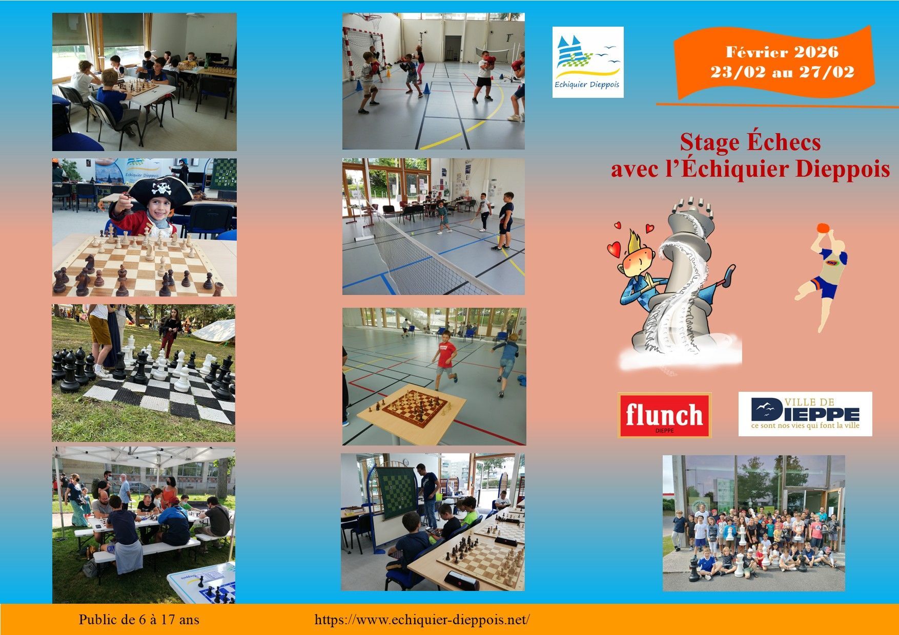 🏆 2ᵉ Rapide Jeunes de Gonfreville-l’Orcher Nombre de participants : 65 jeunes Podium : 🥇 Robin Fontaine (Orcher la Tour) – 8 pts 🥈 Clément Cozic (Orcher la Tour) – 8 pts 🥉 Gaël André (Échiquier Lexovien) – 7 pts 👏 Un grand merci au club de Gonfreville-l’Orcher / Orcher la Tour pour l’organisation et l’accueil de ce très beau tournoi jeunes. ♟️ Les jeunes de l’Echiquier Dieppois – Classement & messages Camille Henin – 13ᵉ, 6 pts Très beau tournoi avec un score solide. Une performance régulière face à une opposition relevée, bravo Camille 👏 Marat Dryzhuk – 20ᵉ, 5 pts Un tournoi combatif avec de belles parties accrochées. De l’expérience gagnée et une progression constante 👍 Joseph Postel – 28ᵉ, 5 pts Bon tournoi, sérieux et appliqué. Les points sont là et la marge de progression aussi, continue comme ça 💪 Eliot Mace Lu – 36ᵉ, 4½ pts Un tournoi encourageant avec de belles résistances. De bonnes choses montrées sur l’échiquier, bravo 👏 Thiago Montarou – 41ᵉ, 4 pts Un tournoi sérieux et appliqué. De l’expérience engrangée dans un tournoi très dense, félicitations 🙂 Liam Mace Lu – 43ᵉ, 4 pts De bonnes parties et une belle combativité. Continue à t’accrocher, les progrès sont visibles 💪 Gabriel Batista Lanoix – 46ᵉ, 4 pts Un tournoi solide avec de l’engagement jusqu’au bout. Une base intéressante pour la suite 👍 Basile Postel – 58ᵉ, 3 pts Un tournoi formateur dans un contexte relevé. L’essentiel est l’apprentissage et l’expérience acquise 👏