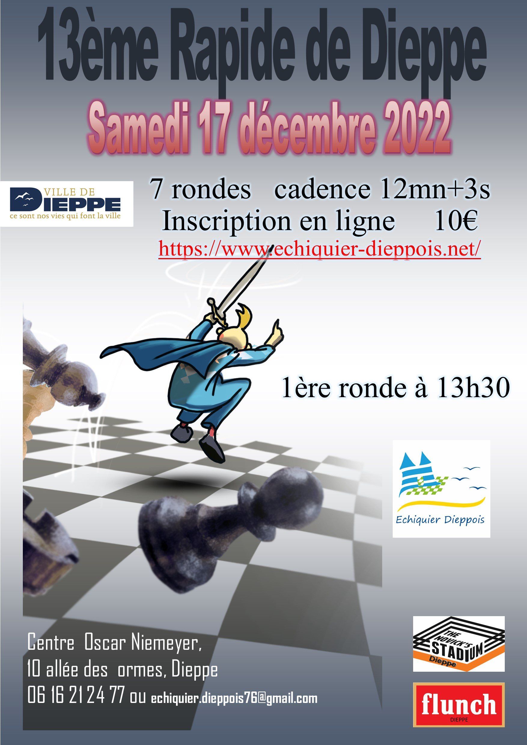 🏆 Festival international d’échecs de Dieppe 2025 : une édition record et pleine d’émotions ! Quelle semaine ! Du 22 au 30 août, plus de 350 joueuses et joueurs venus de tous horizons se sont affrontés dans la salle des congrès et au Casino de Dieppe. Et pour cette 21e édition, l’Échiquier Dieppois peut être fier : jamais nous n’avions connu d’aussi beaux résultats ! 🔥 Deux Dieppois sur les podiums ! Dans l’Open des Rois (+50 ans), François Burdet signe une magnifique 3e place. Dans l’Open B, c’est Férreol Pussiau qui monte lui aussi sur le podium, en terminant 3e. 👏 Mais les belles performances ne s’arrêtent pas là : En Open A, Jean Lefrançois décroche la 31e place et devient le meilleur Dieppois de la catégorie. Toujours en Open A, Jules Pace brille avec trois prix de meilleure performance (rondes 3, 7 et 8), tandis que Charles Pace réalise un solide tournoi avec 4,5 points. 💪 Dans l’Open B, nos Dieppois ont montré les muscles ! Paul Allain, champion de chessboxing, termine dans le top 10 (10e place). Sacha Pont (14e), Camille Hénin (16e), Paul Amichaud (17e) et Benjamin Mazzarèse (27e) et jules Dodin 28ème complètent ce très beau tableau. Mention spéciale aussi à Alain Goacolou, Jules Blosseville, Léo Allard, Nour et Yehya Feltane, qui décrochent la moitié des points, preuve d’une belle régularité. 🎯 Un travail d’équipe qui paye ! Les résultats sont là : de nombreux joueurs de l’Échiquier Dieppois ont gagné des points ELO, mais surtout en confiance et en expérience pour attaquer la nouvelle saison. Le programme d’entraînement à l’année porte ses fruits, et la motivation de tous promet encore de grands moments à venir. ✨ Merci à toutes et tous pour cette édition inoubliable. L’avenir des échecs à Dieppe s’annonce radieux, moderne et jeune !