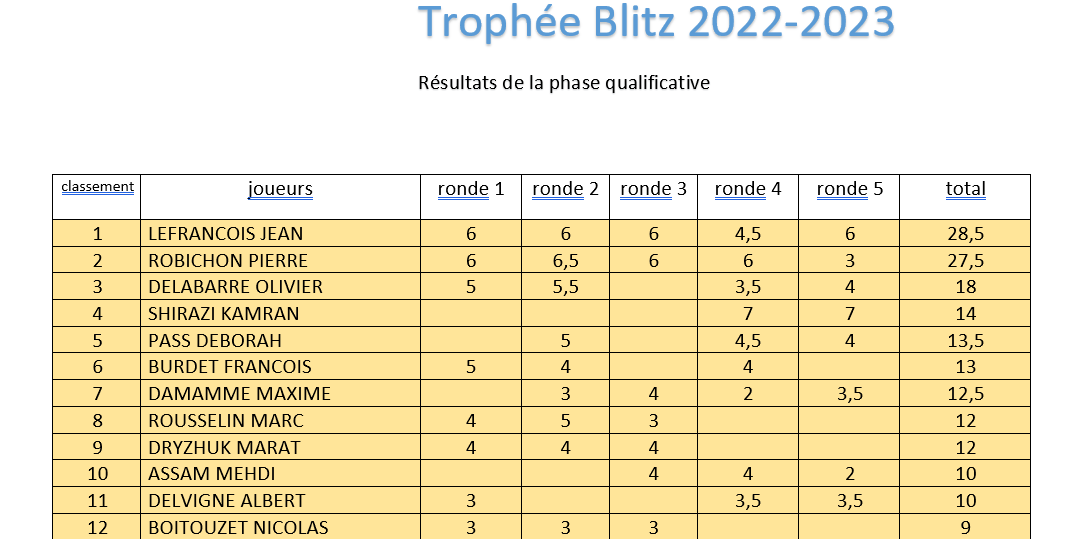 | trophée blitz ronde 5 Classement après la ronde 7 |