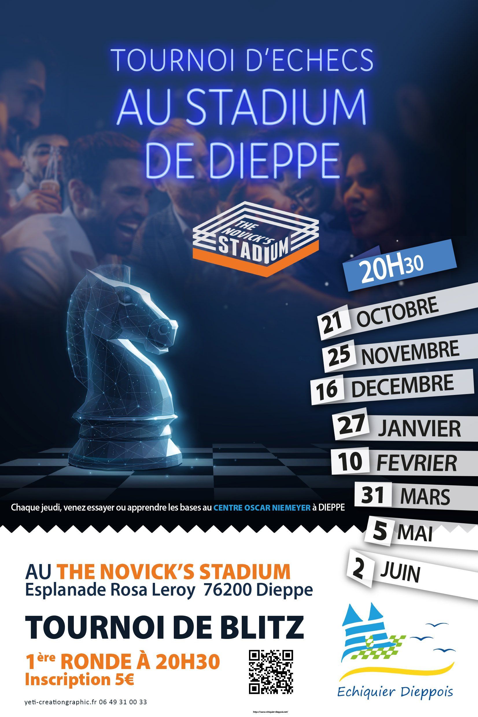 🏆 Festival international d’échecs de Dieppe 2025 : une édition record et pleine d’émotions ! Quelle semaine ! Du 22 au 30 août, plus de 350 joueuses et joueurs venus de tous horizons se sont affrontés dans la salle des congrès et au Casino de Dieppe. Et pour cette 21e édition, l’Échiquier Dieppois peut être fier : jamais nous n’avions connu d’aussi beaux résultats ! 🔥 Deux Dieppois sur les podiums ! Dans l’Open des Rois (+50 ans), François Burdet signe une magnifique 3e place. Dans l’Open B, c’est Férreol Pussiau qui monte lui aussi sur le podium, en terminant 3e. 👏 Mais les belles performances ne s’arrêtent pas là : En Open A, Jean Lefrançois décroche la 31e place et devient le meilleur Dieppois de la catégorie. Toujours en Open A, Jules Pace brille avec trois prix de meilleure performance (rondes 3, 7 et 8), tandis que Charles Pace réalise un solide tournoi avec 4,5 points. 💪 Dans l’Open B, nos Dieppois ont montré les muscles ! Paul Allain, champion de chessboxing, termine dans le top 10 (10e place). Sacha Pont (14e), Camille Hénin (16e), Paul Amichaud (17e) et Benjamin Mazzarèse (27e) et jules Dodin 28ème complètent ce très beau tableau. Mention spéciale aussi à Alain Goacolou, Jules Blosseville, Léo Allard, Nour et Yehya Feltane, qui décrochent la moitié des points, preuve d’une belle régularité. 🎯 Un travail d’équipe qui paye ! Les résultats sont là : de nombreux joueurs de l’Échiquier Dieppois ont gagné des points ELO, mais surtout en confiance et en expérience pour attaquer la nouvelle saison. Le programme d’entraînement à l’année porte ses fruits, et la motivation de tous promet encore de grands moments à venir. ✨ Merci à toutes et tous pour cette édition inoubliable. L’avenir des échecs à Dieppe s’annonce radieux, moderne et jeune !