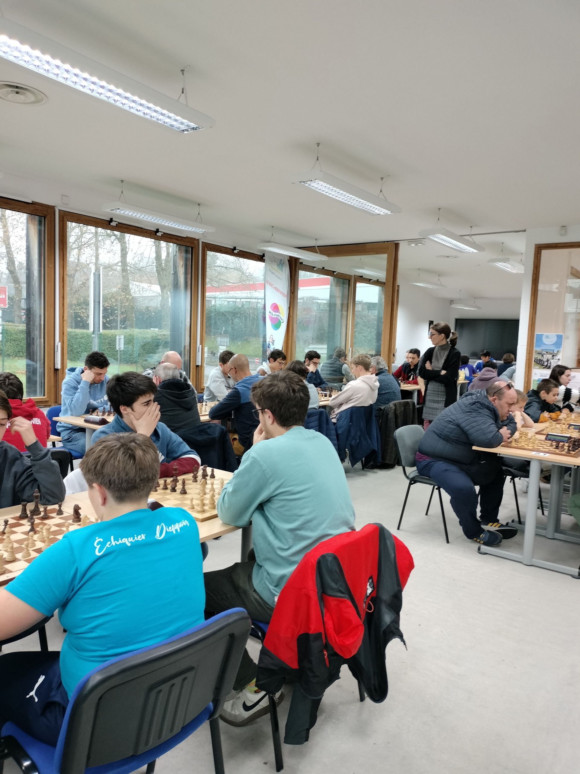 Retour sur le tournoi de Rouen 2024 Comme chaque année, après Noël, l'Échiquier Dieppois participe en nombre, avec ses jeunes, au tournoi de Rouen. Dans le tournoi principal, très belle performance de Jean qui se classe à la 8ème place avec 4,5 points. Il aura même fait douter le vainqueur qui est maître international au terme d un zeitnot endiablé. Maxime confirme les espoirs placés en lui avec 3 points et surtout une belle compréhension du jeu qui lui permet de gagner avec panache. Des erreurs de concentration l empêchent de faire mieux. Dans le tournoi B, c est Paul qui finit premier dieppois à la 6ème place avec 5 points mettant en valeur le chessboxing dieppois!! Chez les jeunes, la progression et l envie de bien jouer a fait plaisir à voir. Marius fait un peu mieux que les autres en finissant 13ème avec 4 points tandis que Sacha, Camille, Ferréol et Clément sont juste derrière. Encore un peu trop de précipitation et de manque de calcul mais ce genre de tournoi sert à cela. Gagner de l'expérience. Nos jeunes ont ainsi eu le courage d affronter des adultes et de se mesurer à des joueurs aguerris. Le championnat de Normandie jeunes arrive vite et nous espérons de bons résultats. Nous félicitons nos jeunes pour leur excellent comportement, leur patience et leur solidarité pendant ce tournoi. Nous remercions aussi l'équipe de Rouen Échecs pour leur organisation impeccable.