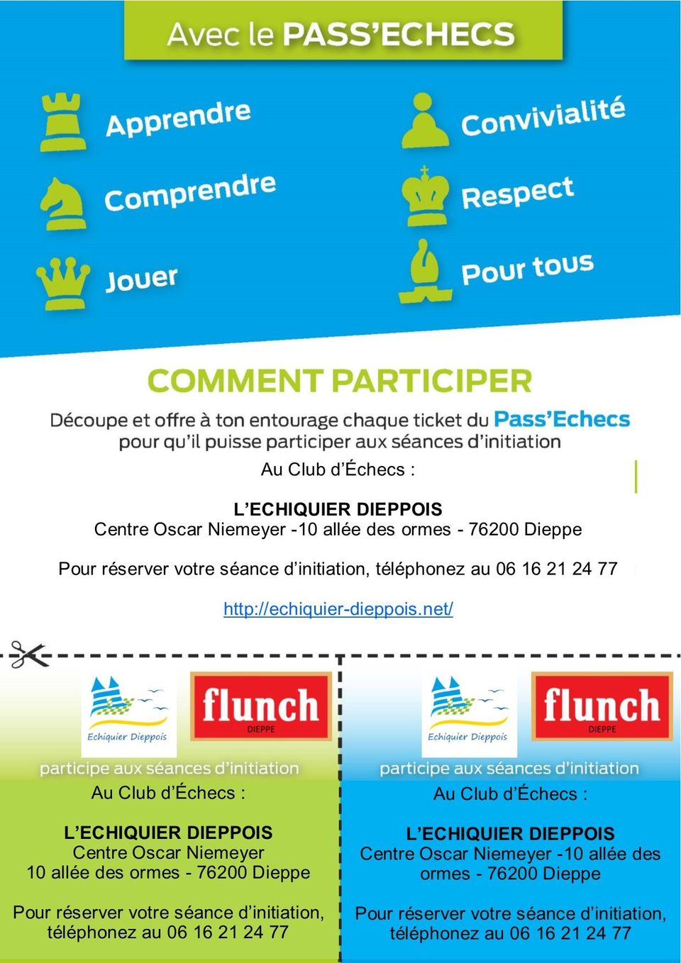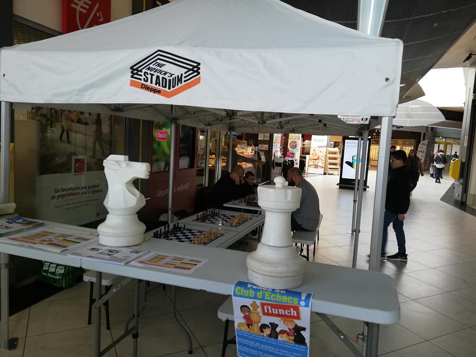 Avec notre partenaire Flunch Dieppe, nous avons ensemble organisé 2 animations sur 2 jours autour du jeu d'Echecs dans la galerie marchande du Belvédère mais aussi dans le restaurant Flunch, je remercie toute l'équipe de Flunch pour leur accueil et nous prévoyons de programmer à nouveau une journée d'animations en 2020.